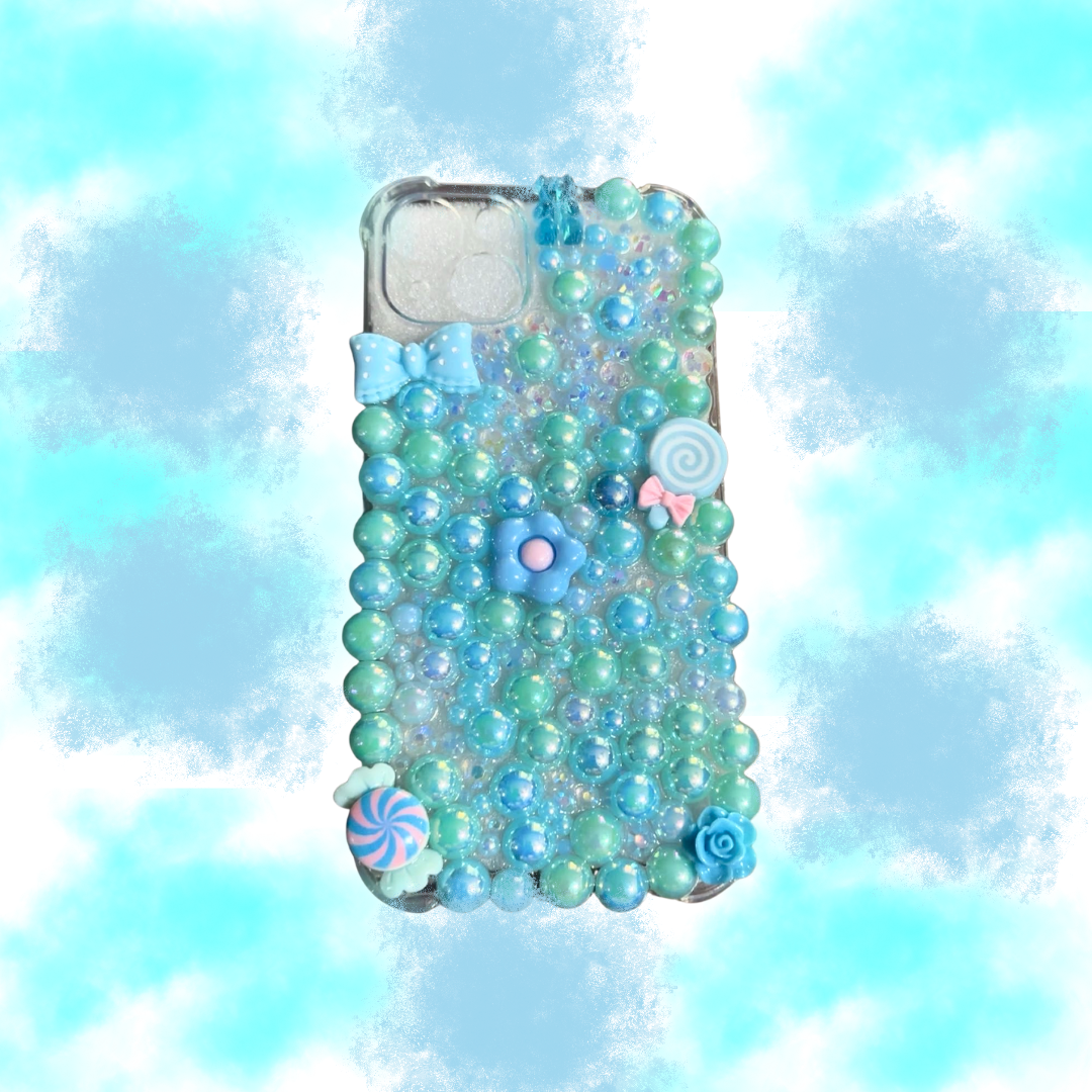 "Upgrade your phone's style with our Aqua/Baby Blue Junk Phone Case. Each case is one-of-a-kind, featuring unique designer charms that are sure to make a statement. Note: Email us to verify and confirm design availability before purchasing." Design may vary.