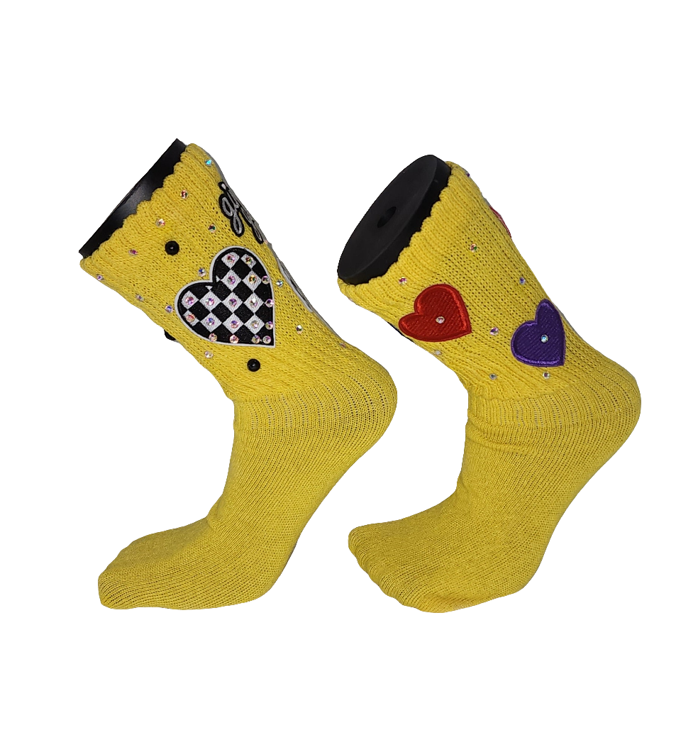 Join the Yellow Girl Gang and show off your love with our Love Junkie socks! Featuring vibrant hearts and a stylish design, these adult size socks (6-8) are sure to make a statement. Stay cute and bright in these fun and fashionable socks. Design may vary.