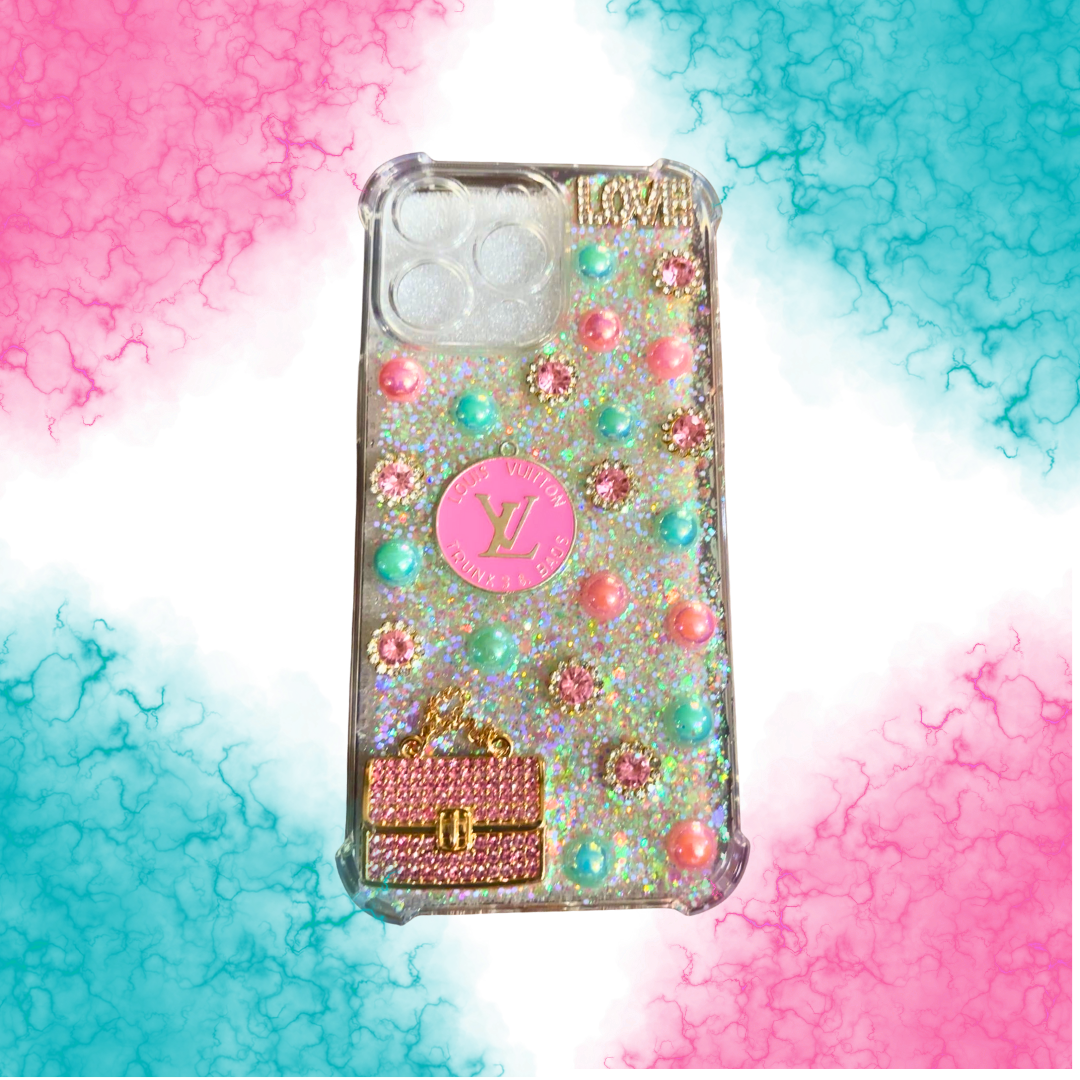 Add a touch of sophistication and sparkle to your phone with our Aqua Blue and Light Pink Pearl Junk phone case. The multi color glitter and pearls create a pretty and eye-catching design, perfect for any fashion-forward individual. Please note, design may vary slightly for a unique touch.