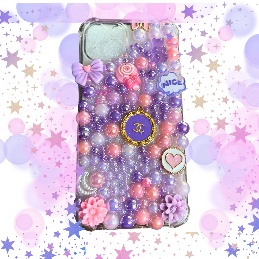This Purple and Pink Pearl Junk phone case features vibrant and unique multi-colored pearls, creating a one-of-a-kind design. Each case may vary in design, adding to its individuality. Elevate your phone protection with a touch of elegance and style.